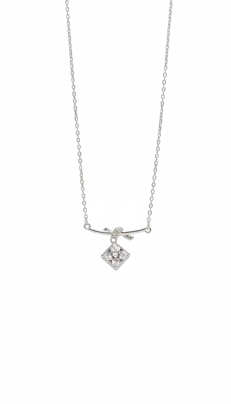 Colar Elegance Laço com Pedra Quadrada